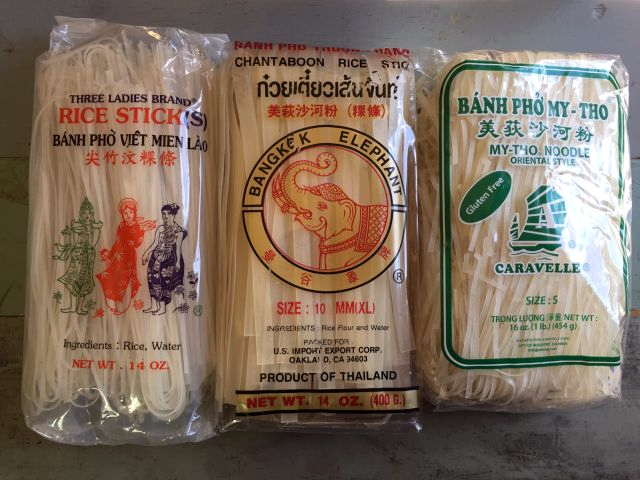 - Packaging: Look for boxes or plastic packages of rice sticks, pad Thai noodles, bánh phở, or Chantaboon (a Thai city renowned for rice noodles).