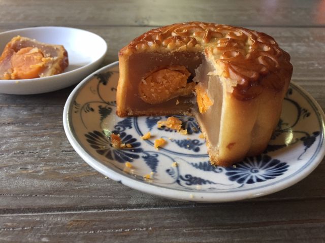 When moon cakes are bad, they're like yucky old fruitcakes. When moon cakes are good, they are sublime, subtly sweet with a buttery, nutty salted chicken or duck yolk.