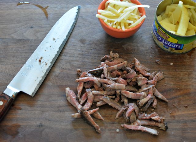 - ½ cup matchstick-cut bamboo shoots, or 30 dried tiger lily bulbs, soaked and trimmed of knobby ends