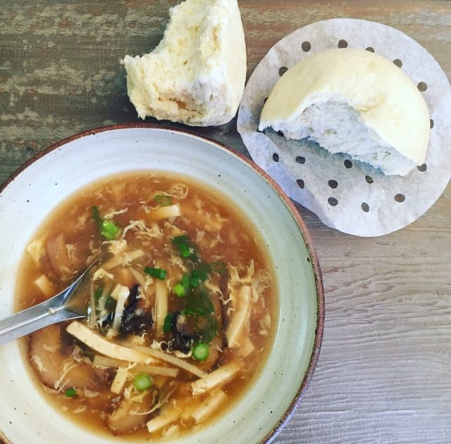 We ate our hot-and-sour soup for lunch two days in a row. You can enjoy it with bread or a side salad. The owner and chef of Shun Feng, a favorite Chinese restaurant in town, gifted me some mantou - northern Chinese steamed buns made of yeast-leavened bao dough shaped into balls and steamed. I'm always asking them about their staff meals so they occasionally give me little tastes.