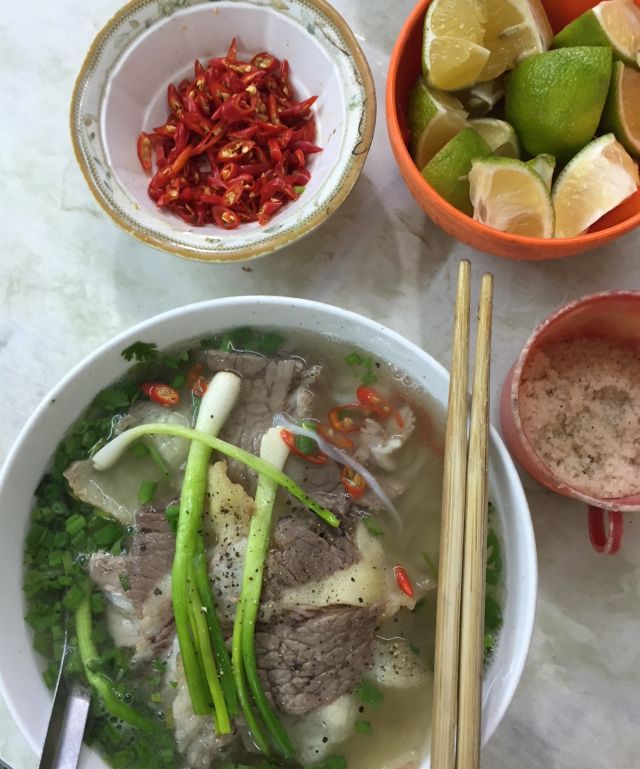 There was a group of women squatting around a giant soup pot in Hanoi's old market. They appeared like old friends gathering for a morning snack. Of course, I had to get closer to figure out what was going on. They were visiting and enjoying steaming bowls of pho. The pho vendor joyously poured a spoonful of MSG into the bottom of each bowl to start her pho assembly routine. The white crystals of magical flavor were part of her mise en place arranged around her. I was surprised but curious.