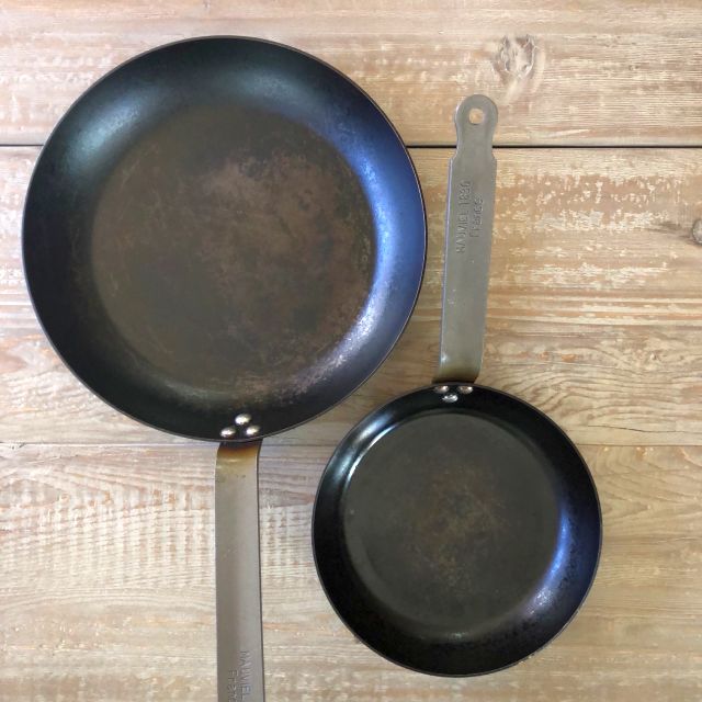 I bought the Mauviel M'Steel 11-inch skillet sight unseen because it's got a thick carbon steel surface, was just enough weight for me to handle, and its size was in between medium (10 inch) and large (12 inch). It was a Goldilocks decision. I also have an 8-inch Mauviel M'Steel for small jobs like frying a single egg or making a one-person omelet; it's a good size and price for a gateway carbon steel skillet.