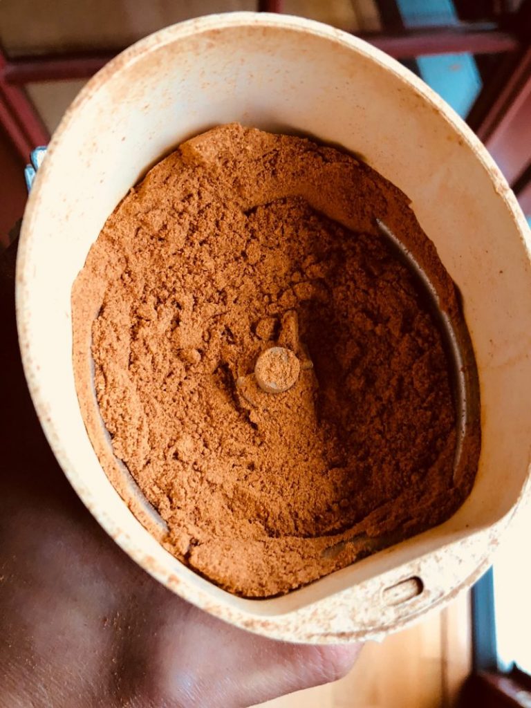 - To make the spice blend, use an electric spice grinder (a coffee grinder dedicated to spices in my kitchen). Put the gochugaru and Sichuan peppercorns in the grinder and whirl as finely as possible. Shake the grinder as it's working to move things around. Add the MSG and salt, then whirl to a finer texture, like a powder. Add the nutritional yeast and paprika. Grind more to create a very fine, orange blend.