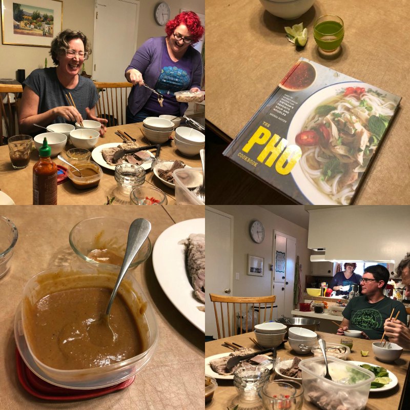 Because of family and work commitments, the cookbook club lapsed a bit. However, this year, they decided to make it a regular thing again. With the cool weather, they kicked off 2018 with a pho focus.