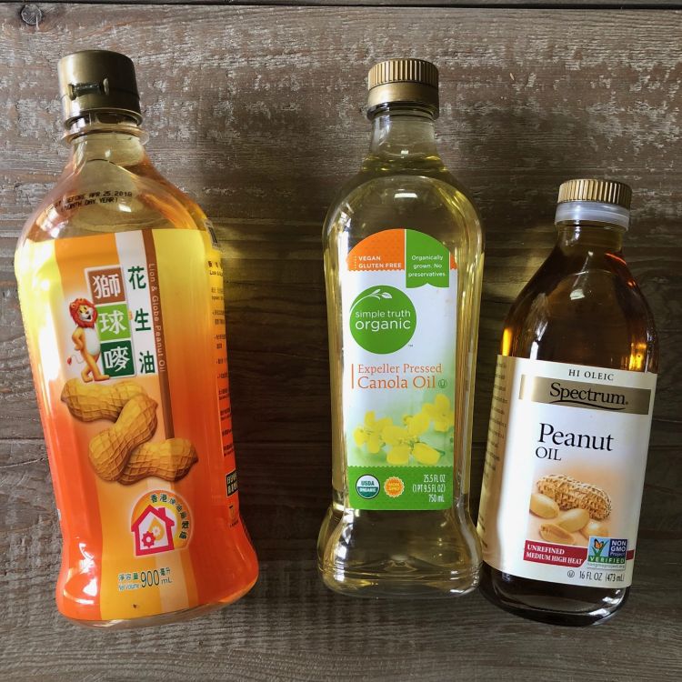 What oil to use. You can use semi-refined peanut oil sold at many Chinese markets; Lion and Globe is the go-to brand and it's excellent. Or, you can blend American supermarket oils like canola with unrefined peanut oil. Unrefined or semi-refined peanut oil is nutty and toasty. It lends dimension. Because unrefined peanut oil has lower smoking point and more intense flavor than semi-refined peanut oil, I blend it with canola (use another neutral oil, if you like).