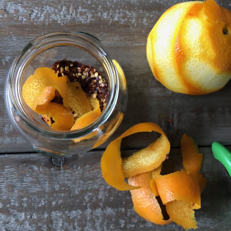 - Citrusy: 1 ½ tablespoons dried chile flakes, 1 ½ teaspoons Korean ground chile (gochugaru) and peel of 1 navel orange (use a vegetable peeler to remove)