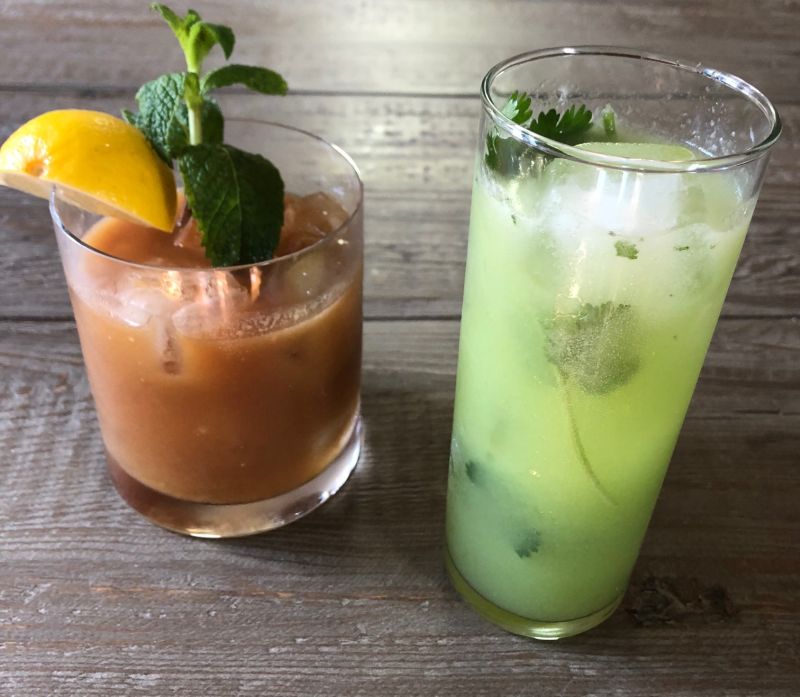 Garnish: 2 cilantro sprigs and 2 mint sprigs (optional)