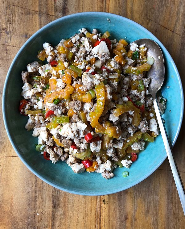 Okinawan Bitter Melon, Tofu, and Pork Scramble