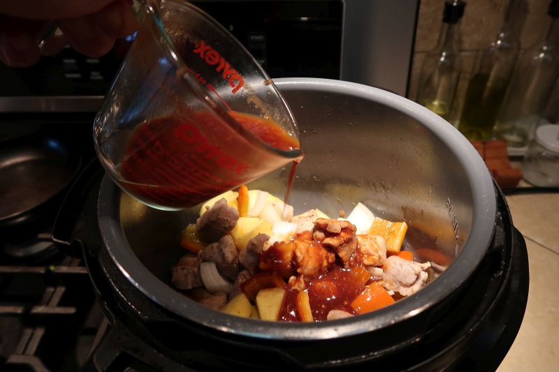 The book offers a global range of recipes that includes Korean bibimbap, Lao larb, cider-braised pork. broccoli-cheddar soup and pound cake. I was scanning for Asian recipes and spotted the sweet and sour pork recipe. Coco's is a healthy version of the tradition one which involves briefly cooking pork cubes with pineapple, bell pepper, and onion in tangy sauce. Her brief pressure cooking promised to deliver cooked pork and tender crisp veggies. I was game to try it out.