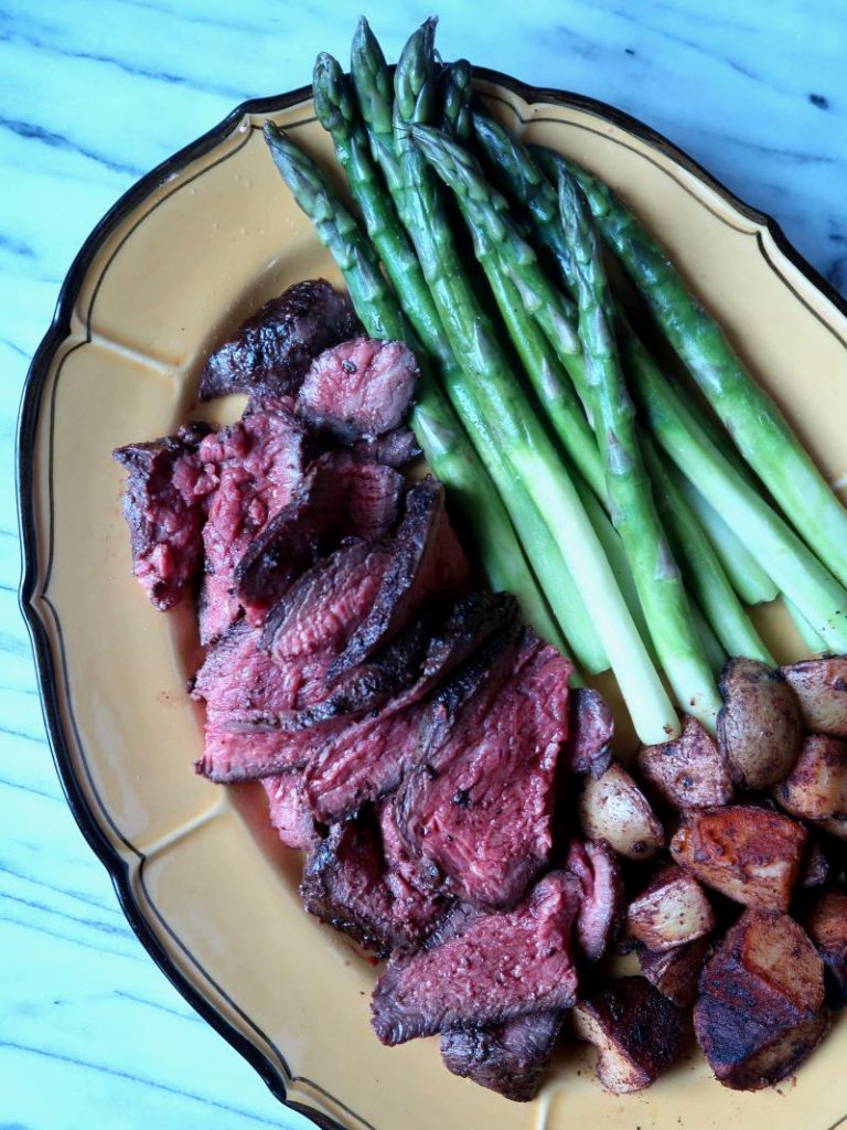 After cooking the steak (see the recipe below), I washed the skillet, then warmed the asparagus in the pan with little butter, and seasoned it with some of my Red Boat umami salt blend. (Feel free to toss the asparagus in the pan without washing it; I wanted to keep the spears tasting pure.)