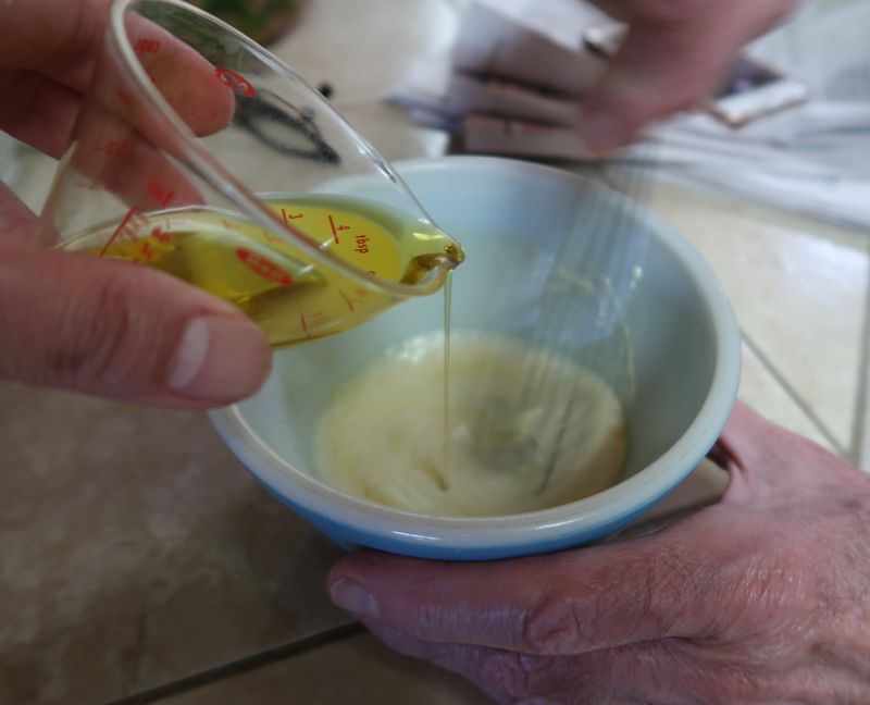 Along with the fish sauce, I skipped the whole egg emulsion and took a shortcut by subbing mayonnaise, which is an emulsion of egg, acid and oil. Creating an emulsion with egg isn't something many people would do on a weeknight. The mayonnaise made the dressing less fussy, and you can make a smaller amount than usual.