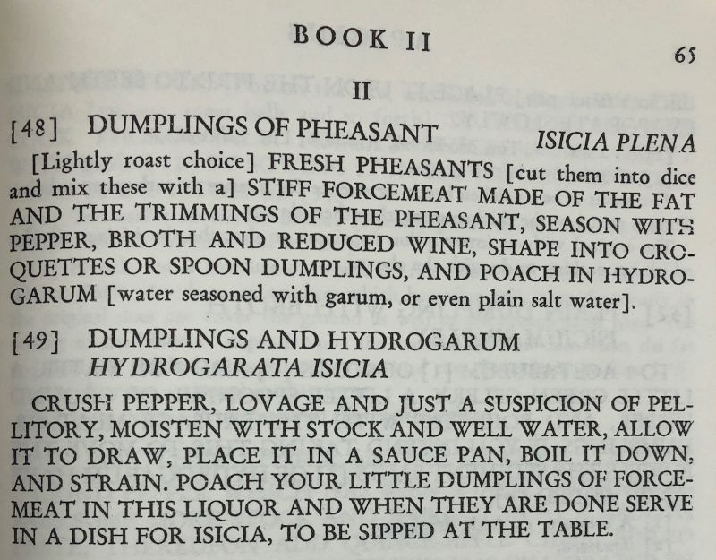 Looking up its backstory in Apicius de re Conquinaria, considered the oldest known cookbook, I found some funny translator notes.