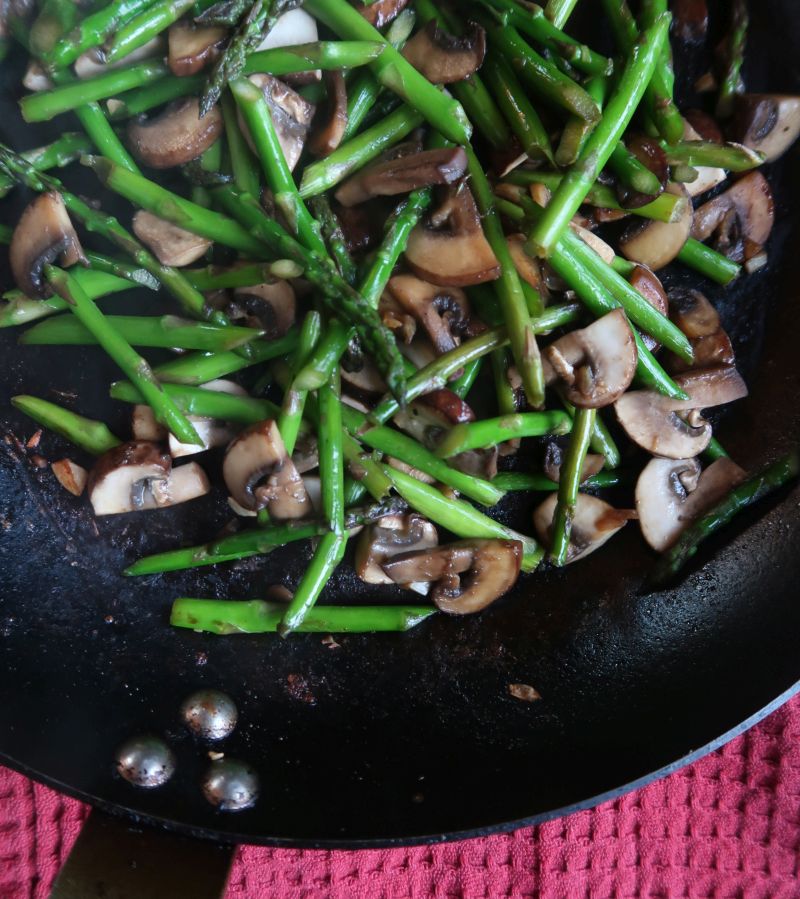 First thing I did was splashed some into an asparagus and mushroom saute. To make the dish: warm oil until hot, add the 6 sliced mushrooms, cook and splash in a bit of garum; once the mushrooms are glistening, add 4 to 5 ounces trimmed skinny asparagus and 1 finely chopped garlic clove, then cook and season with garum until tender crisp.