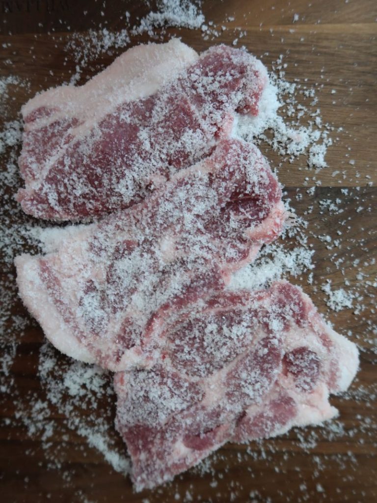 The brined result was lightly saltier but not more flavorful or spectacular than the unbrined version. My first two rounds of testing were with pork shoulder steaks: