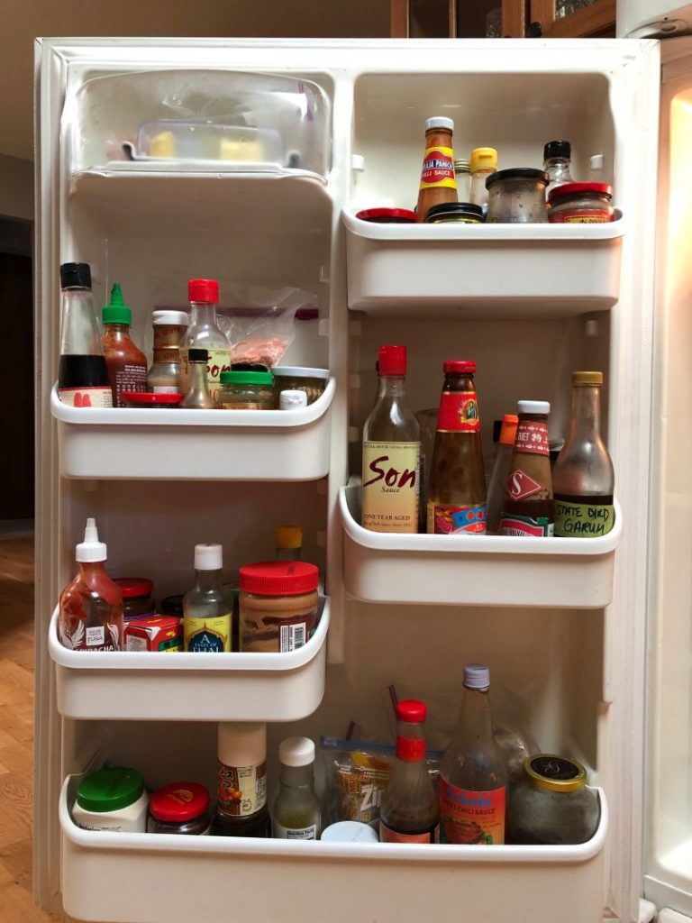 Keeping things real here, my kitchen isn't tidy, but I'm going to let you peek inside my fridge, condiment cabinet and pantry (a dark hall closet). I spread my fish sauce stash in all three of those spots. The explanation below will hopefully explain my strategies.