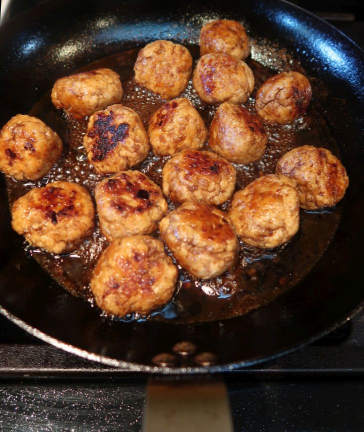 And while cooking the meatballs, you may gently turn each one with chopsticks or just shake and the pan with a slight tossing motion. You may also do a bit of both!