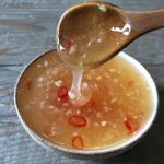 - Combine the sugar, vinegar, and ¼ cup of the water in a small saucepan over medium-high heat, stir well, and bring to a boil. Cook until the mixture begins to take on some caramel tones, just slightly golden, 4 to 6 minutes. Remove from the heat and stir in the chiles and garlic. Cover and steep for 20 minutes.