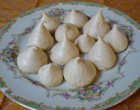 If you want to go lighter than the gingery cookie or have a gluten-free issue, make meringue! My family has been meringue-ing for decades. They originally made the kisses to resemble mushroom caps, which we'd employ to decorate Christmas yule logs. But the logs are a multi-day project so I stick with mostly making the meringues. This recipe is flavored with tangerine -- a seasonal fruit that also has good fortune meaning during Lunar New Year.