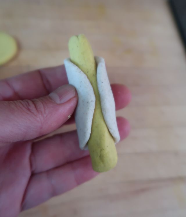 If any big cracks or tears appear, press the skin together. It's forgiving because it's gluten free! The skins dry out easily so work in small batches and keep things covered. Cracks due to colored dough smashing together are negligible.