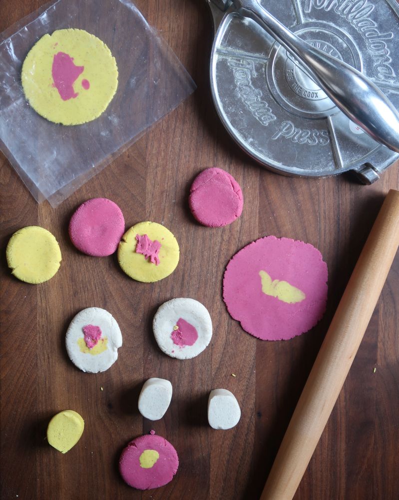 Then I got bold and tinted the dough with turmeric and the beet cooking liquid from steaming beets in the Instant Pot.