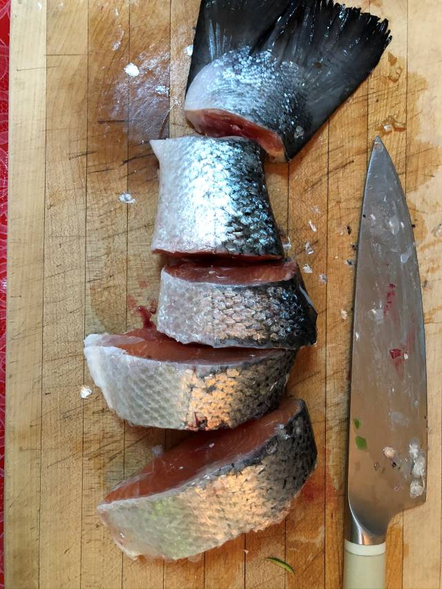 So I cut up the fish with a heavy chef's knife. It wasn't easy, but neither was it hard!