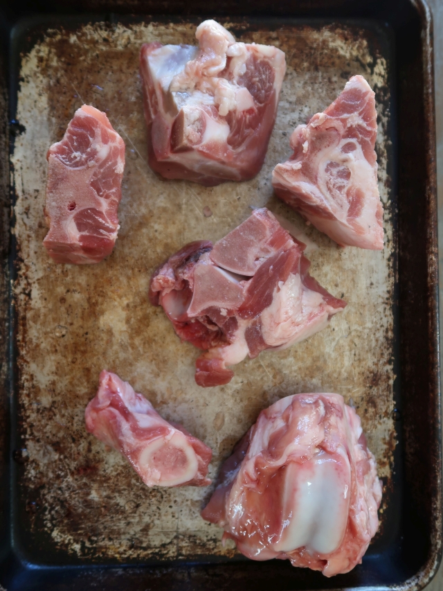 - 2 ½ pounds pork neck or leg bones (usually cut in 3-inch pieces at Asian markets)