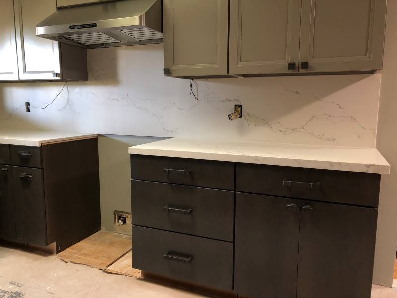 Because I used practically every square inch of the slabs I purchased, the cost of doing the countertops and backsplashes in quartz was affordable. This is how the quartz looked right after installation: