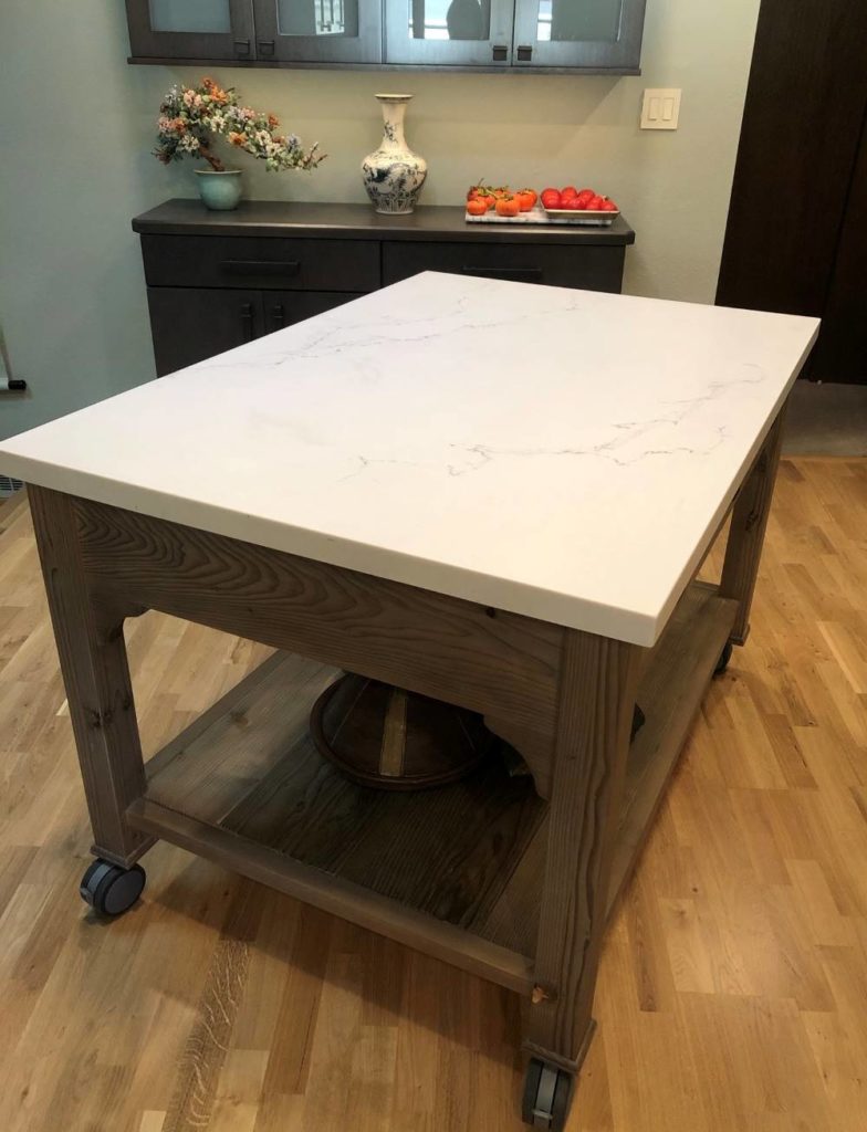 Actually Frank a lot of people would like an island on wheels. I happen to be looking for something similar. Sometimes you need the extra floor space in the kitchen and sometimes you need the counter space. It’s really about flexibility and functionality, and of course personal preference! It looks like she got exactly what she needed and it’s beautiful!