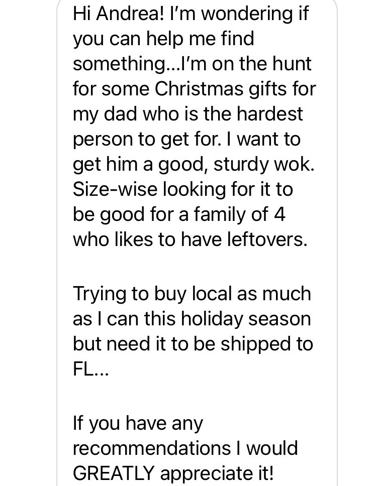For tools, a good wok will pay off handsomely for years. Here's a question from Instagram: