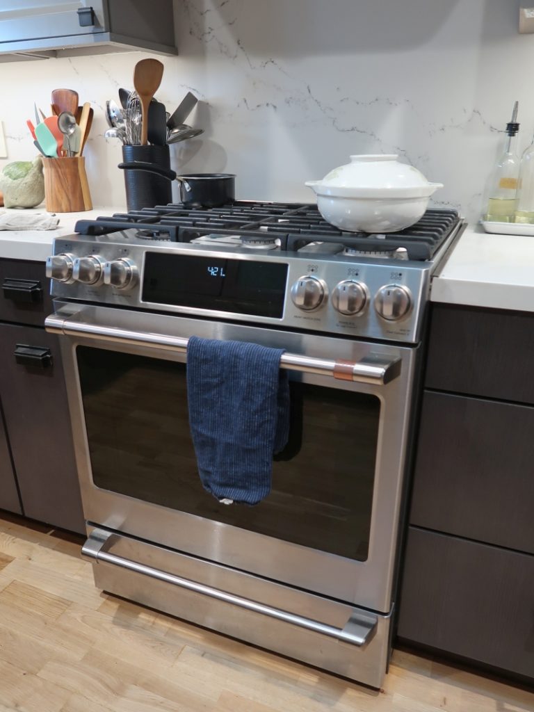One of the most popular articles here at the site in 2020 was about how I chose my new dream stove. I spent a lot of energy researching options before I settled on a 30-inch Cafe slide-in stove with dual fuel (the cooktop is gas and the oven is electric). The stove shopping tips revealed my many considerations and maybe obsessive compulsive nature. I'd never spent more than $1300 on a stove and the idea of spending more than twice that was well, like going from a from a Honda Civic to a Mercedez!