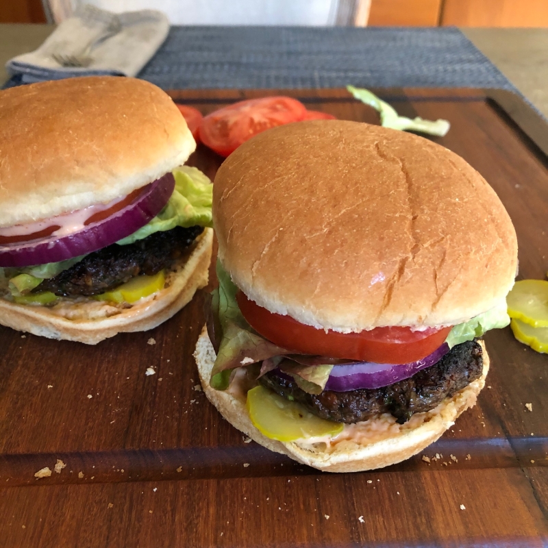 I also tackled hamburgers, creating a splendid 50/50 hamburger that had a 1:1 ratio of cooked vegetables and raw burger. One hundred percent vegan burgers are wonderful and I've developed an EatingWell magazine recipe for one before. But honestly, given my omnivorous tastes, I don't crave them as much as much as the burger that combines well seasoned mushroom and beef. The splendid 50/50 burger recipe satiated my needs for meaty pan-fried goodness and it didn't weigh me down.