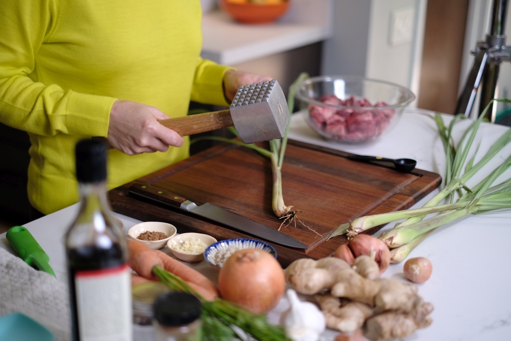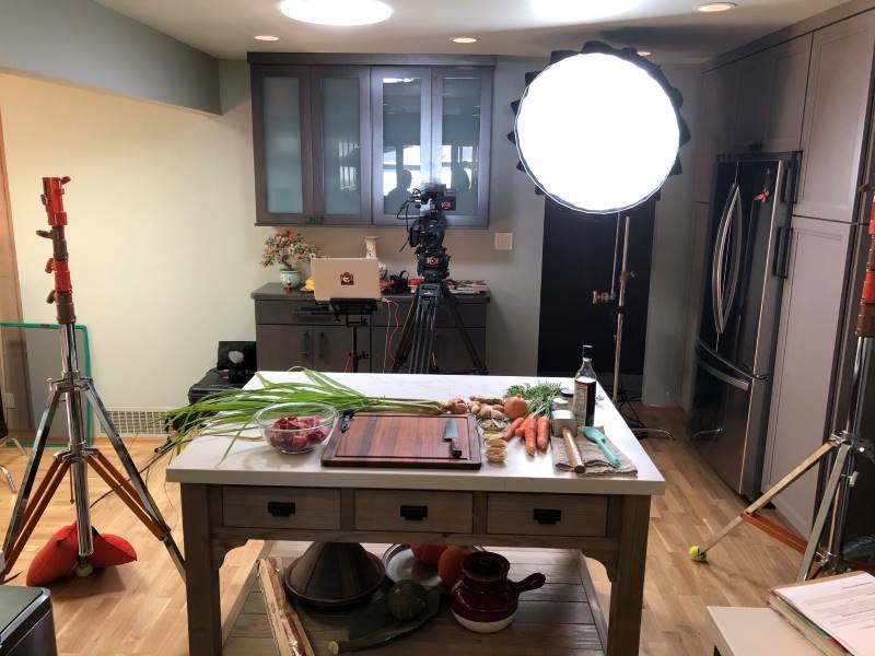I'd prepped all the ingredients and styled my own set. Usually, there are prop and food stylists who do that. During the pandemic, I flew solo! It was fine since Eryana and Andrew wanted a natural, home cooking look. After all, you're in my actual kitchen!