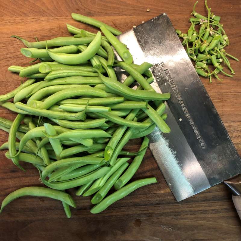 Green beans are a funny vegetable to prep, especially when they're homegrown and come in different sizes. Given that, I sort green beans and cut them according to size. For this recipe, plump long green beans were cut into 3 pieces whereas slender short green beans were halved. I cut at a diagonal for a handsome look.