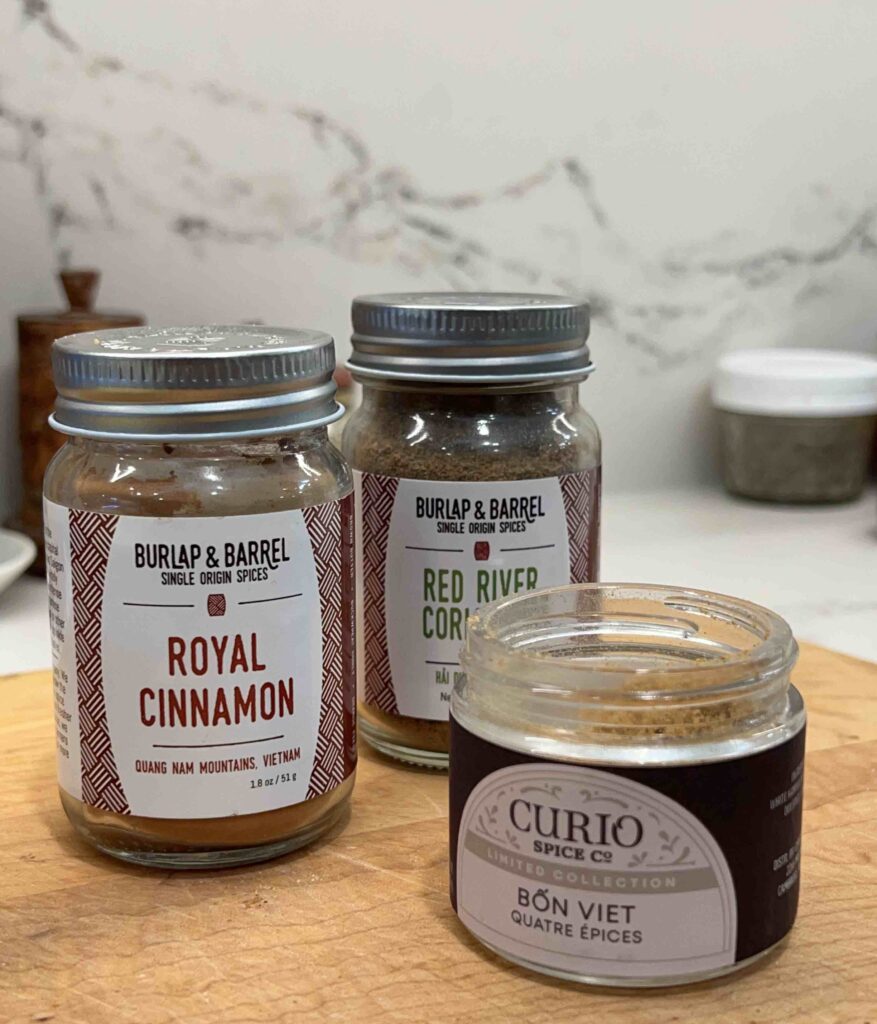 I played around with Royal Cinnamon from central Vietnam, Red River Delta coriander from northern Vietnam, homemade Chinese five-spice powder, and a Viet four-spice blend that included hạt dổi, an usually sweet, menthol-ish spice from the north western reaches of Vietnam. (More on my favorite spice sources here.) Aside from the sweet spices, you could add ⅛ teaspoon salt for a savory note, if you like. It's super fun to play with the spices to create your own Franco-Vietnamese cookie.