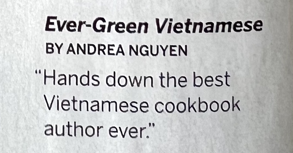 Incredible news! Ever-Green Vietnamese was named among the best cookbooks of 2023 by major newspapers, magazines and radio programs. It won a 2024 International Association of Culinary Professionals award and was James Beard Foundation award finalist. Yowza. Major honors.