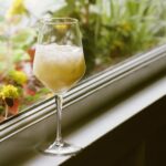 - Add the wine, soda water, vodka, peach purée, orgeat, and absinthe to a chilled wine glass. Add a scoop of ice to the glass and stir gently. Garnish with some freshly grated nutmeg.
