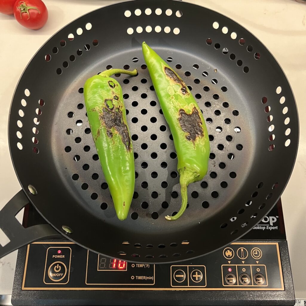 I was surprised at how smoky and evenly the vegetables charred on the perforated pan, both on the gas stove and induction burner. If you want to buy a tool, I strongly consider that one. It's designed to work outdoors so you can take the pan outside!