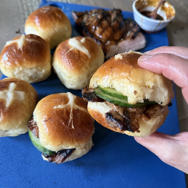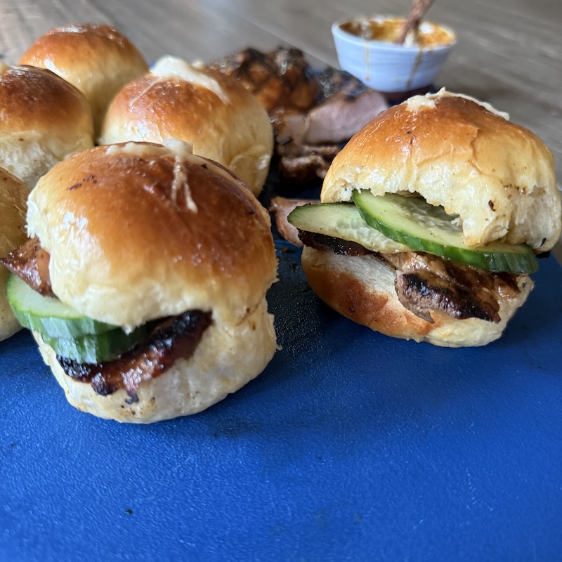 - Turn them into sliders with ham, roast chicken, or my favorite -- char siu pork steak sliders! (below, using a riff on the weeknight char siu ribs recipe in my newsletter)