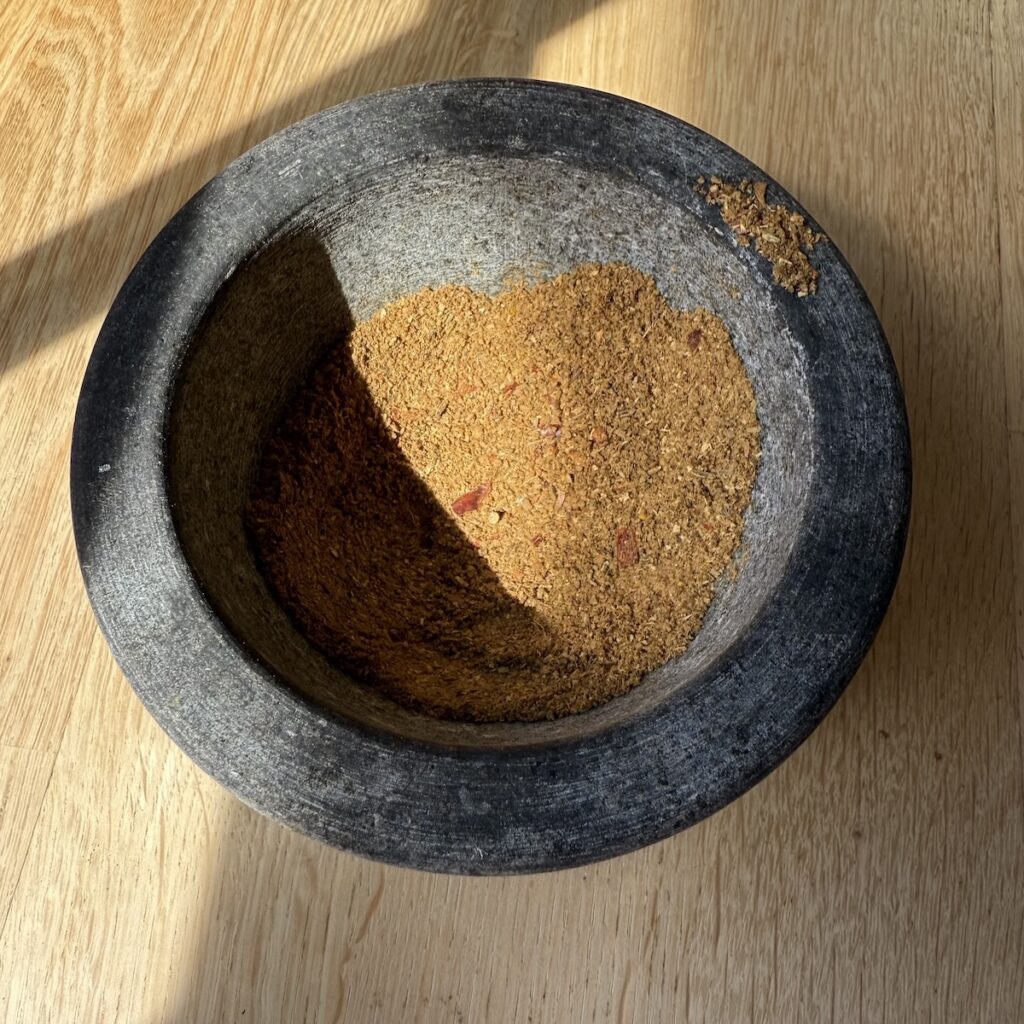 For years, I used an inexpensive blade coffee grinder dedicated to grinding spices and toasted rice. (We have a separate burr coffee grinder for coffee beans.) It works well for many reasons, but has drawbacks. Mine is stained yellow from turmeric. If that happens to you, leave the lid outside for the sun to bleach out the stain.