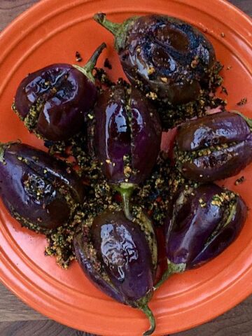 Eggplant Stuffed with Sesame-Cashew Masala Recipe