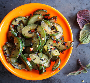 Pan-Fried Cucumber with Red Perilla (Tia To) Recipe